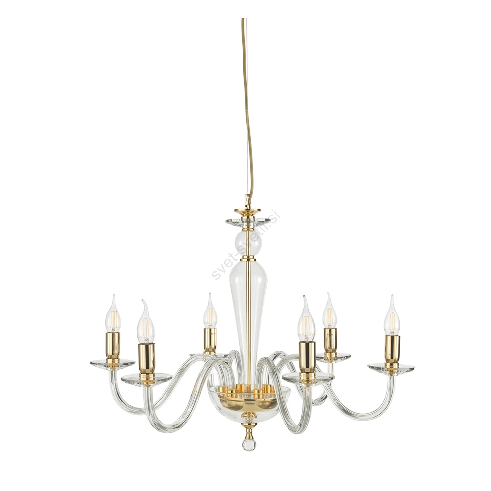 • Ondaluce - Lestenec na jekleni vrvici PAGANINI 6xE14/10W/230V, premer 70 cm, v zlati barvi / s prozornim steklom