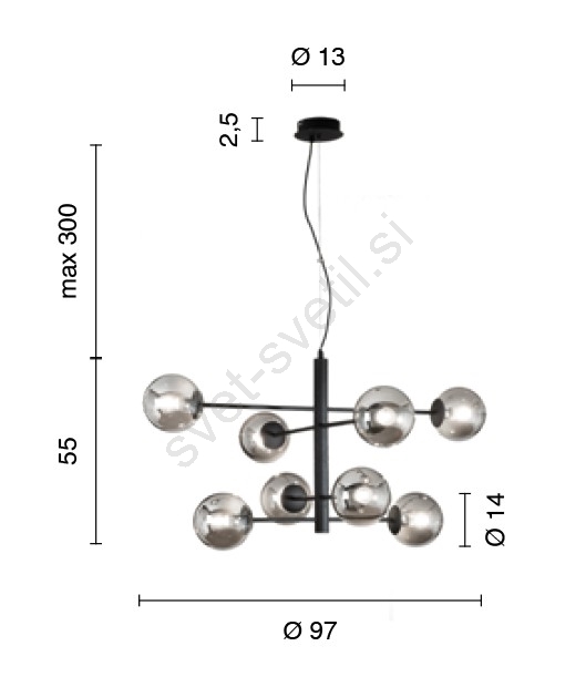Ondaluce - Lestenec na kablu ELISEO 8xE14/10W/230V zlata/dimno bež
