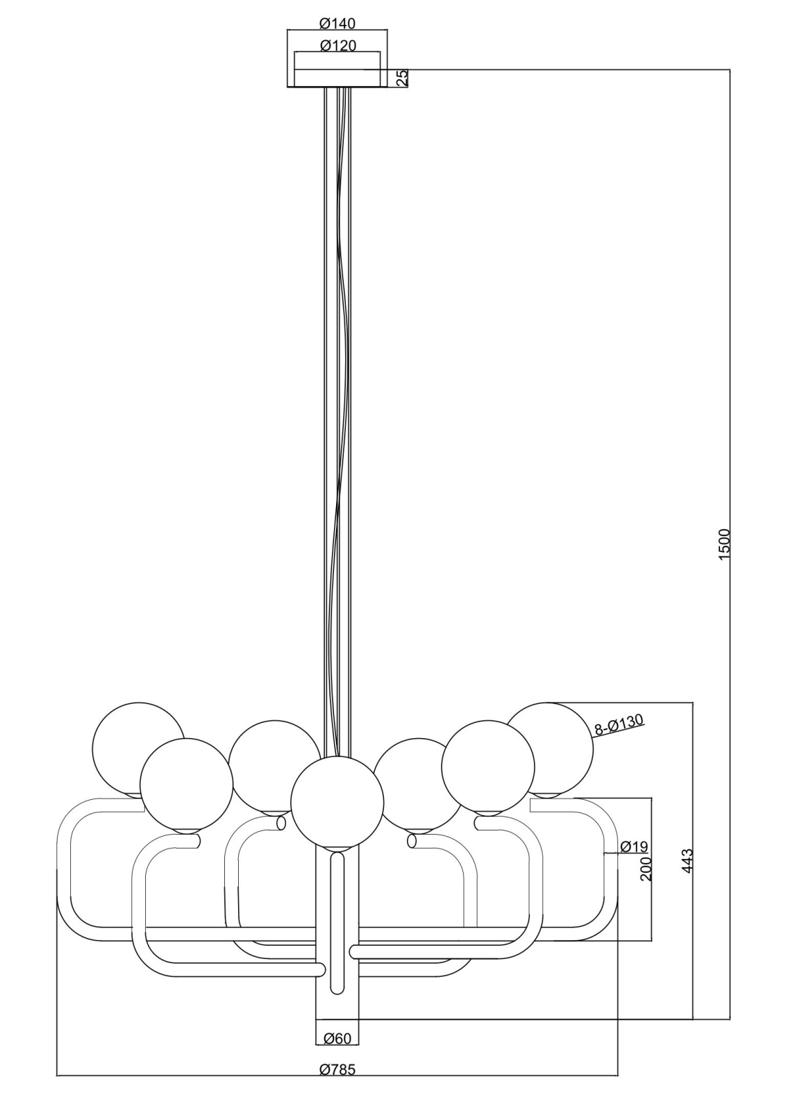 Ondaluce - Lestenec na kablu JEPPY 8xG9/7W/230V premer 78,5 cm zlata/bela