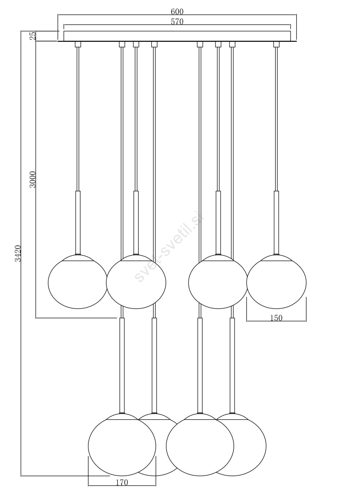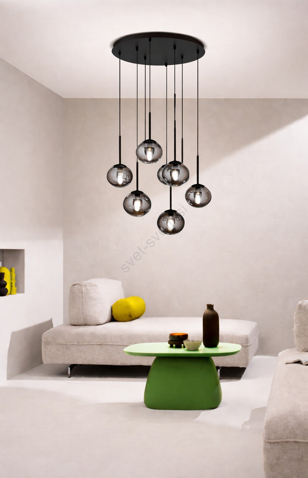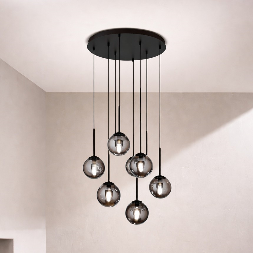 • Ondaluce - Lestenec na žici JEWEL 8xE14/10W/230V, premer 70 cm, v dimno črni barvi