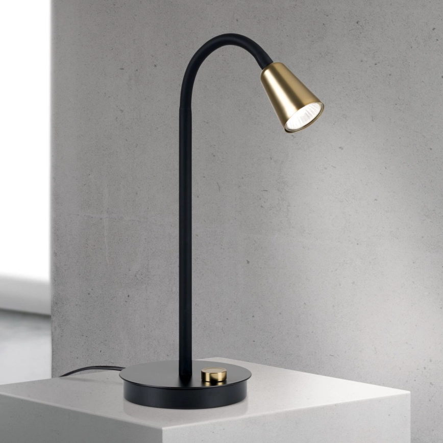 Zatemljiva prilagodljiva namizna svetilka DOTTY 1xGU10/10W/230V črna/medeninasta