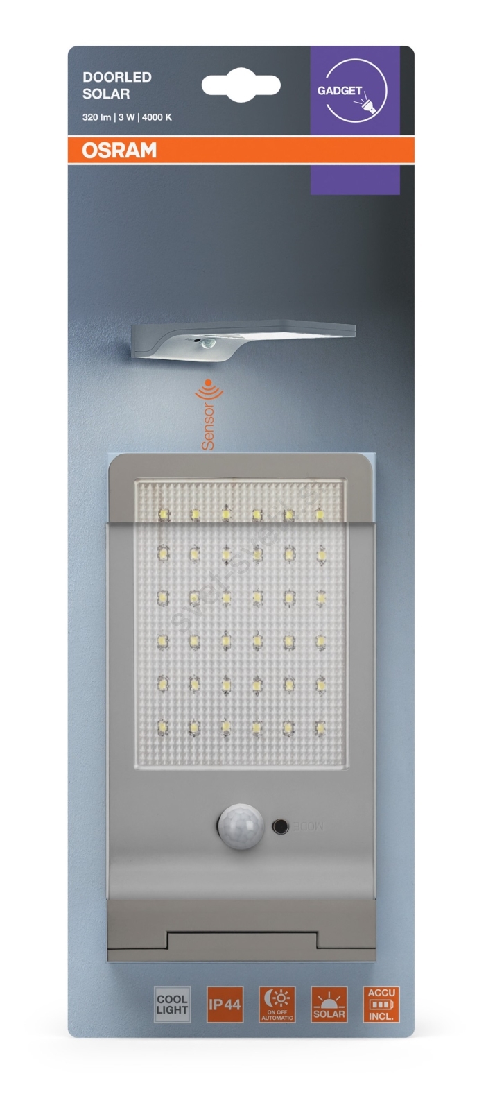 • Osram - LED solarna stenska svetilka s senzorjem DOORLED LED/3W/3,3V 2000 mAh IP44 srebrna