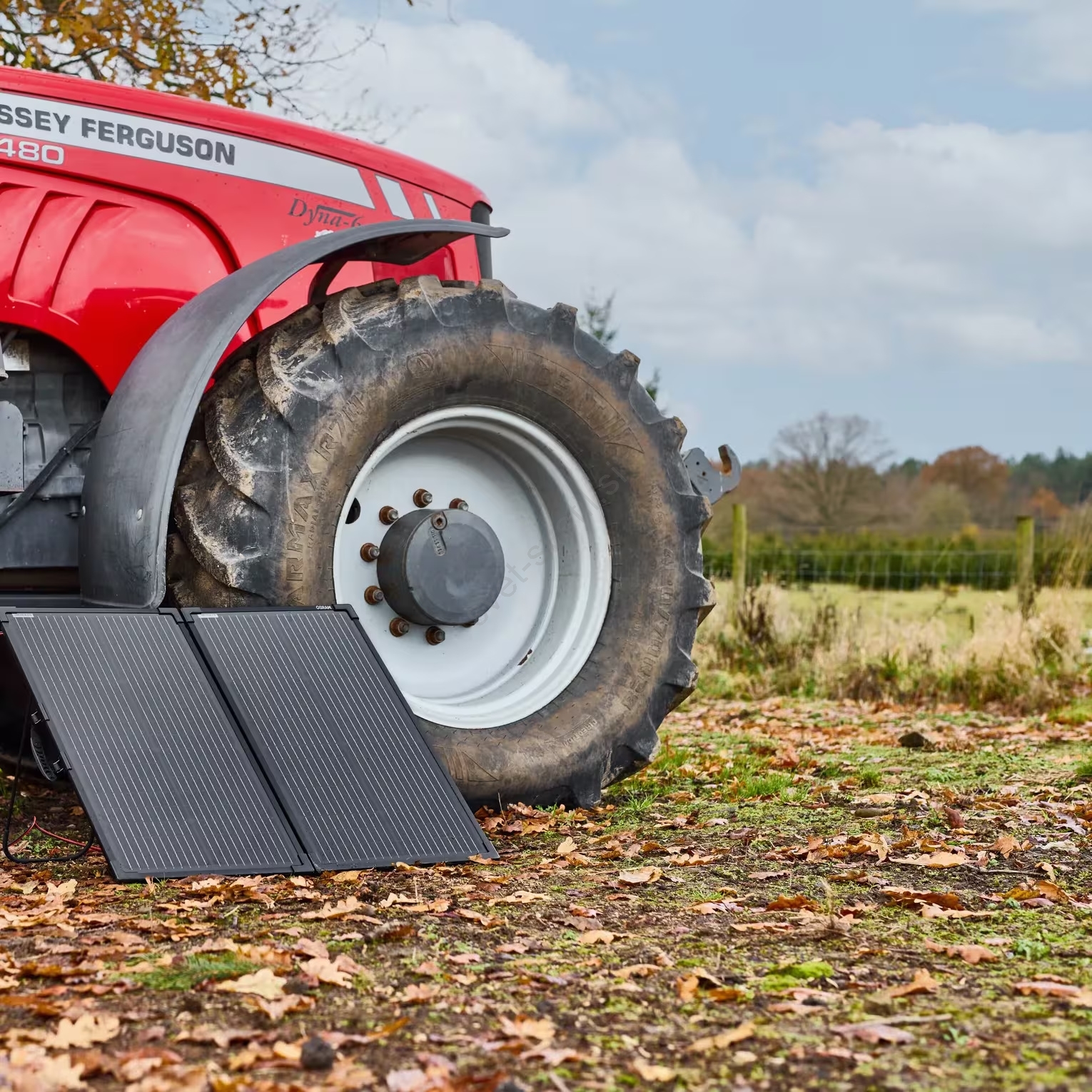 • Opremljen je z monokristalnimi sončnimi paneli v robustnem aluminijastem okvirju in zagotavlja do 100 W brezplačne sončne energije, primerno za karavane, avtodome, kampiranje in uporabo na prostem.