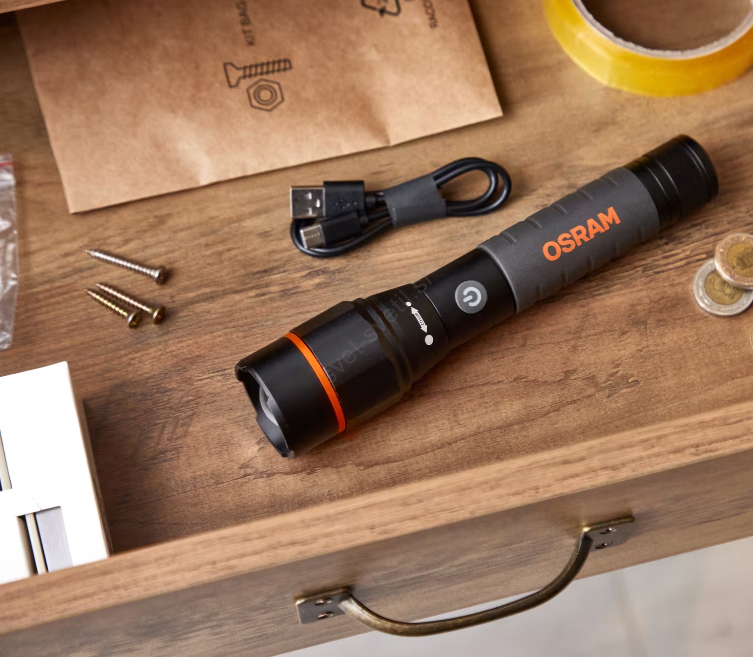 • Funkcija zooma omogoča enostavno nastavljanje med širokim in osredinjenim snopom svetlobe.