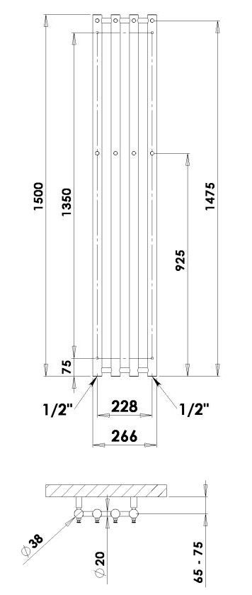 P.M.H. R2B - Kopalniški lestevni radiator ROSENDAL 350 W 150 cm črna