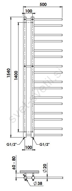 P.M.H. T2C-L - Kopalniški radiator za brisače THEIA 352W 154 cm levostranski/sijajni krom