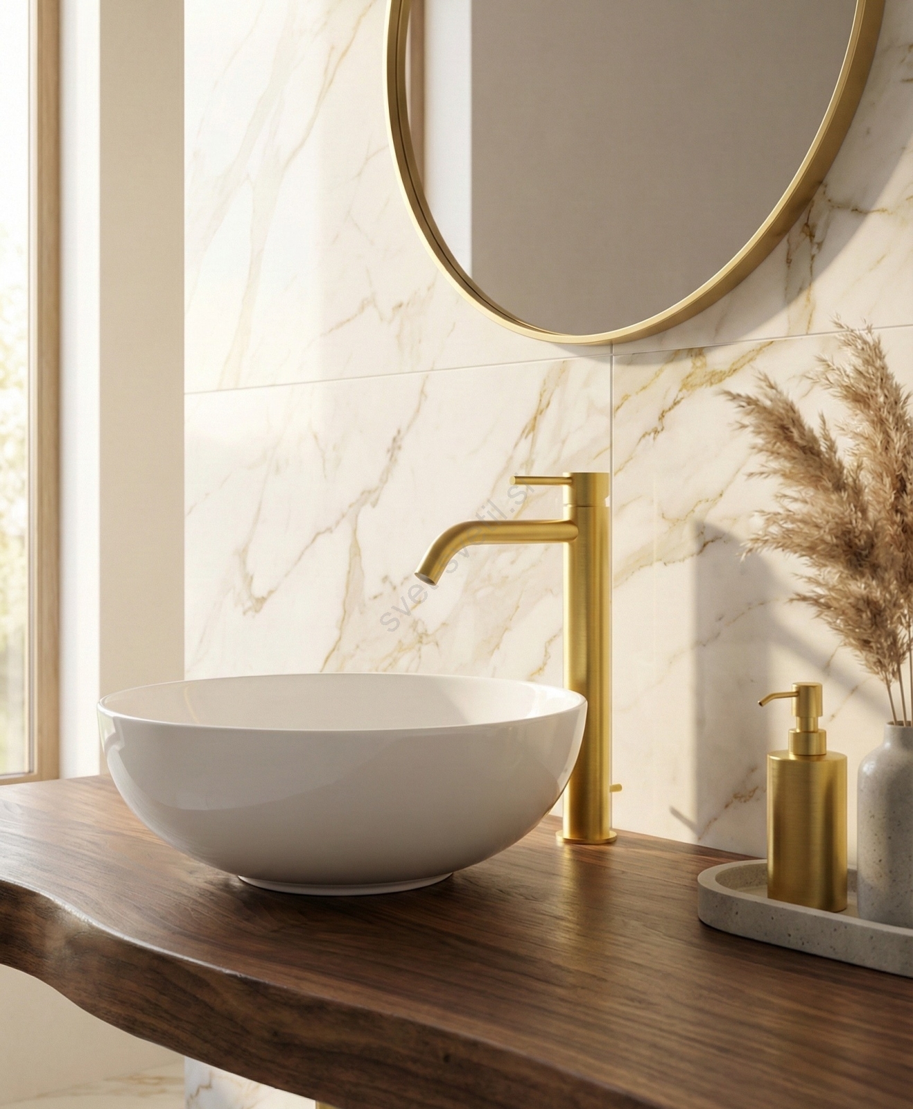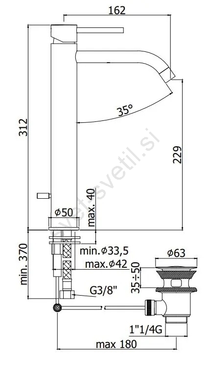 • Elegantna samostoječa umivalniška pipa z odtokom.