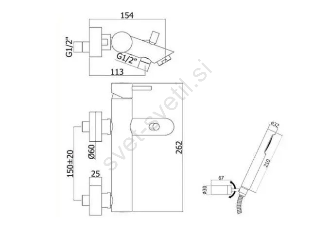 • Stenska kadna armatura s kompletom za prho.