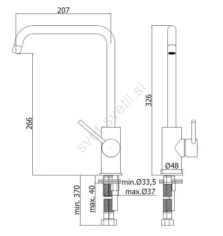 • Kuhinjska pomivalna pipa z enim ročajem za montažo na korito.