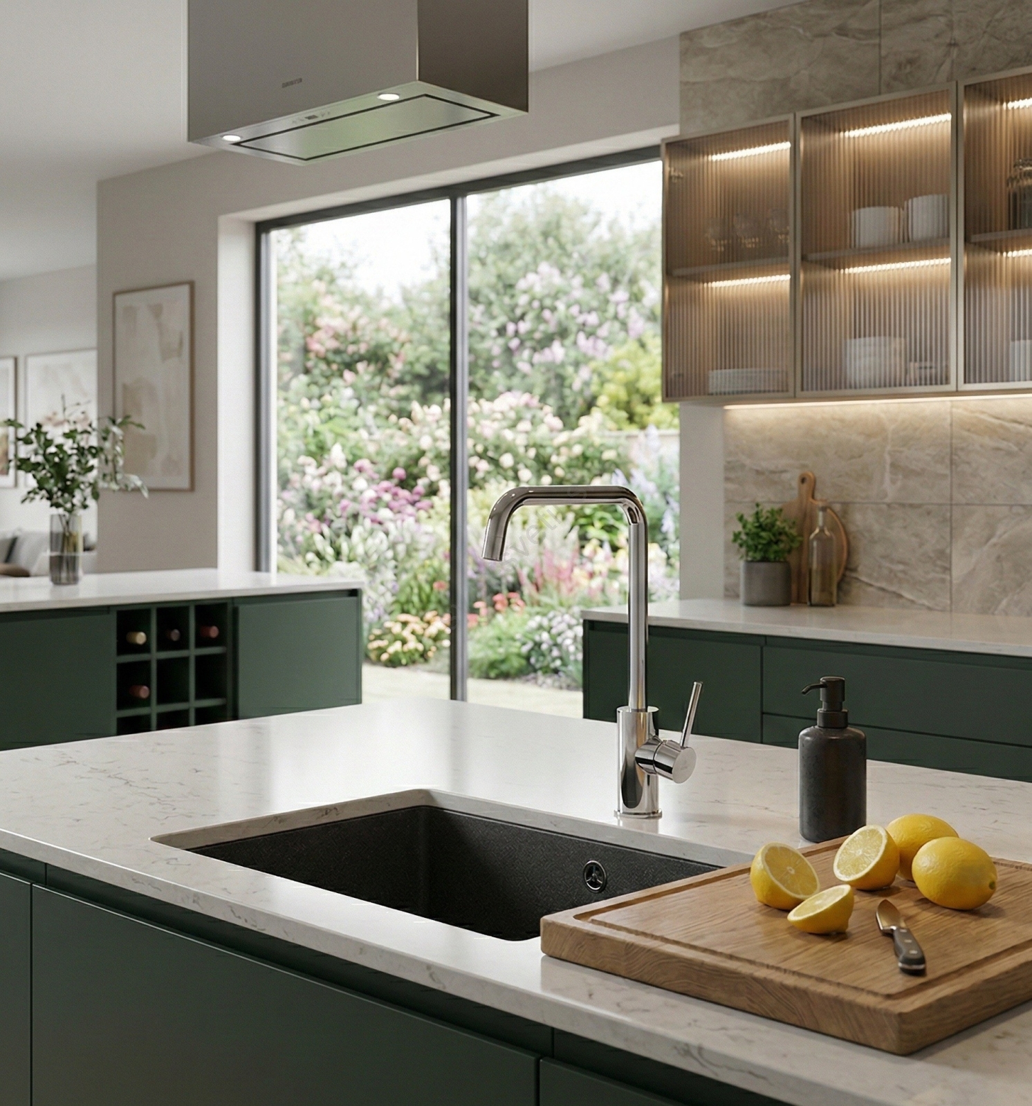• Vrtljiv izliv za udobno upravljanje pri pomivalnem koritu.