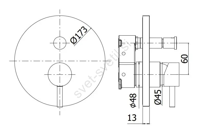 • Dobavlja se kot zgornji komplet z upravljalno ročico in pokrivno rozeto.