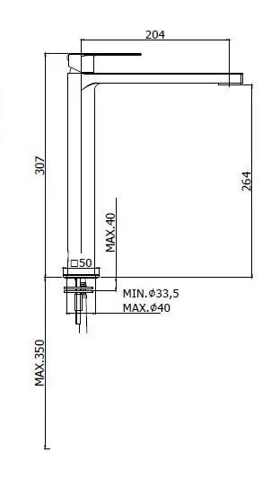 • Podaljšan izliv olajša uporabo pri višjih in večjih umivalnikih.