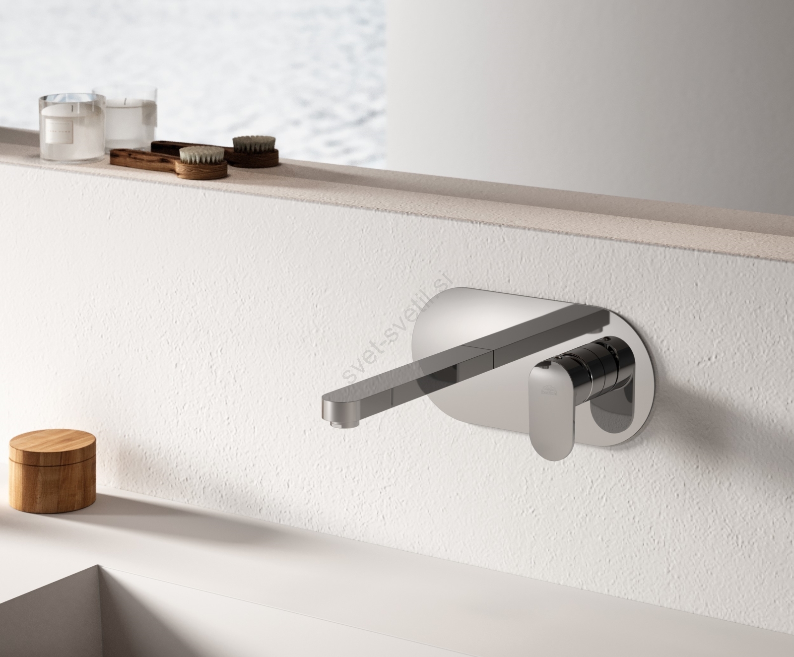 • Enoročna pipa za umivalnik, namenjena podometni vgradnji, v sodobnem, minimalističnem dizajnu.