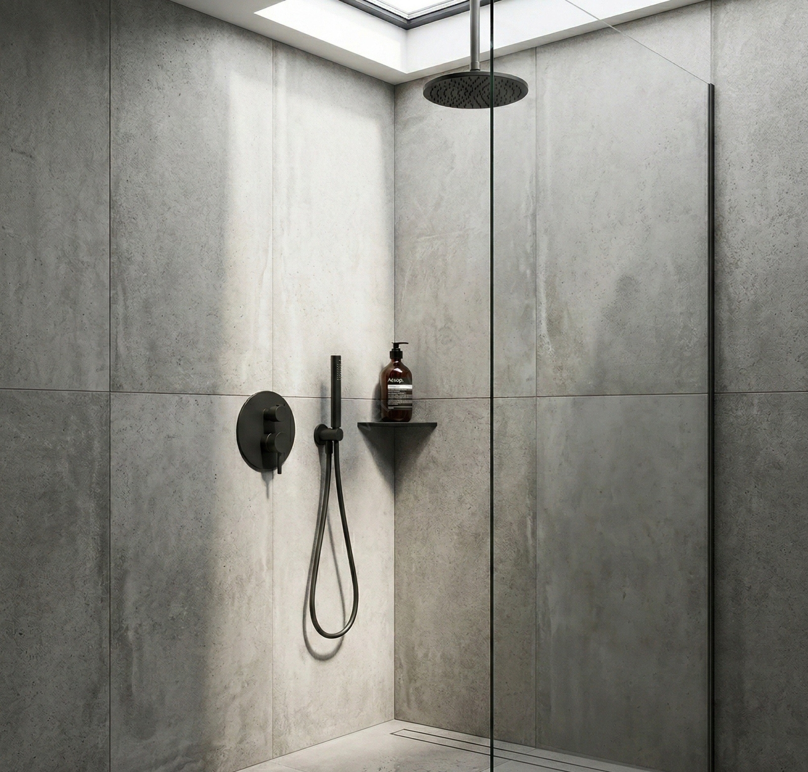 • Eleganten mat črn zaključek za sodobno kopalnico.