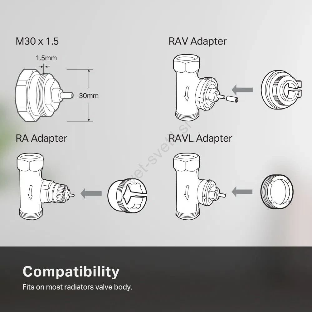 • Dobavljena je z adapterji za namestitev na najpogostejše tipe ventilov radiatorjev.