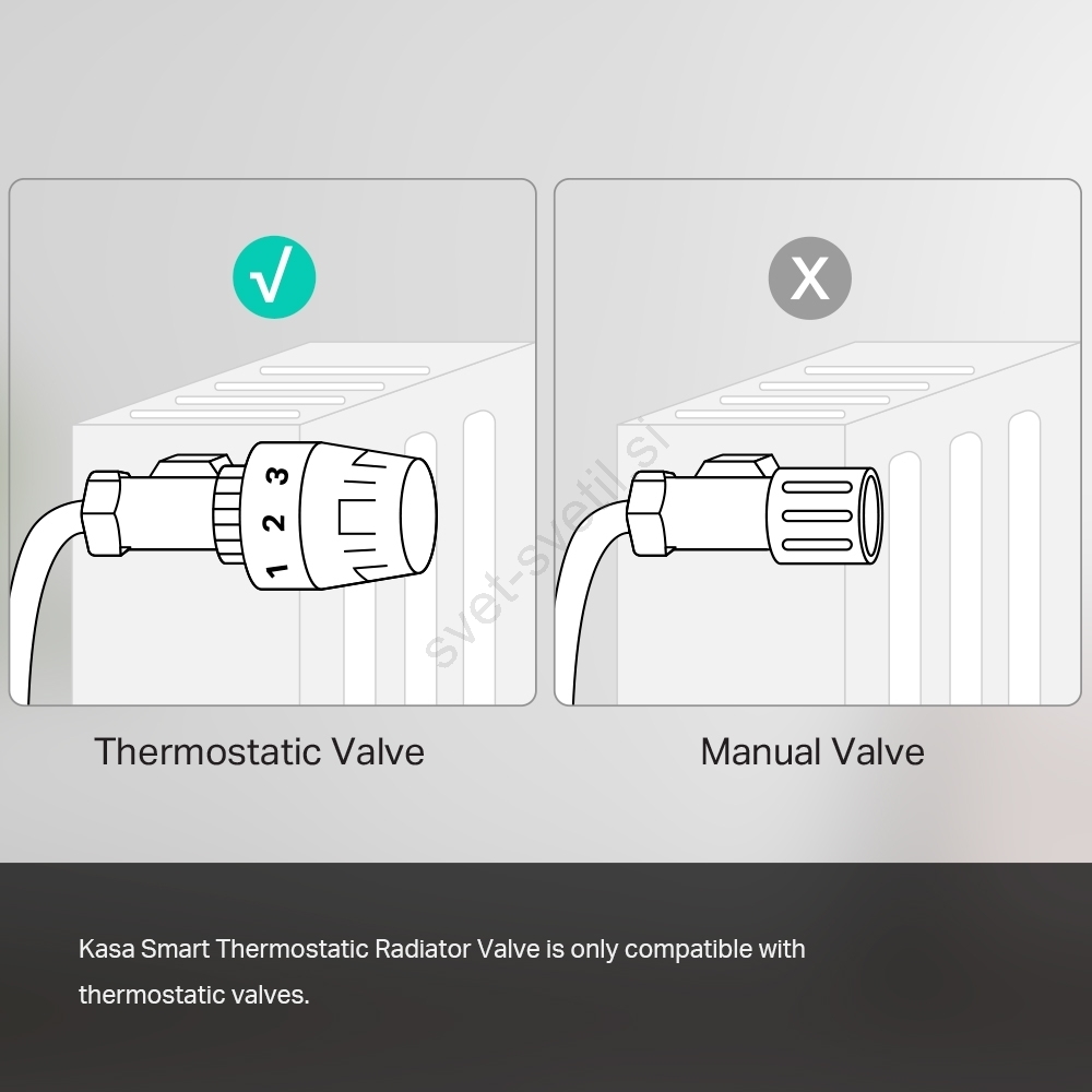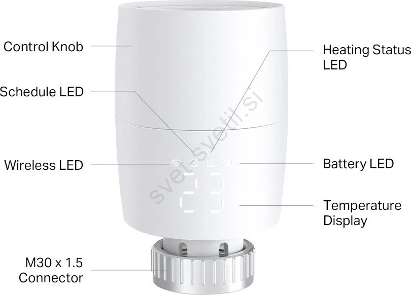 • Pametna termostatska glava za radiatorje, ki ti omogoča natančno regulacijo temperature v prostoru prek mobilne aplikacije.