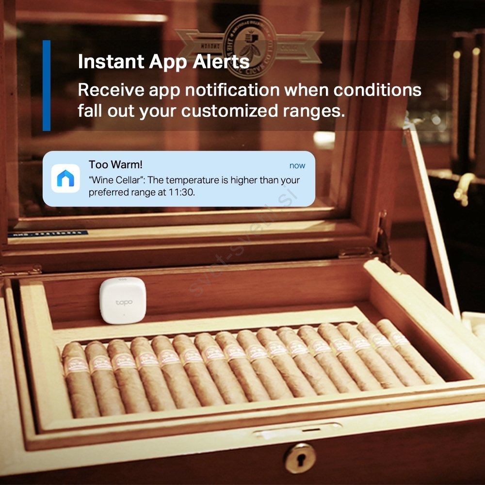 • Brezplačno shranjevanje podatkov in vizualni prikazi - Beleži podatke o temperaturi in vlažnosti ter ustvarja redne povzetke podatkov.