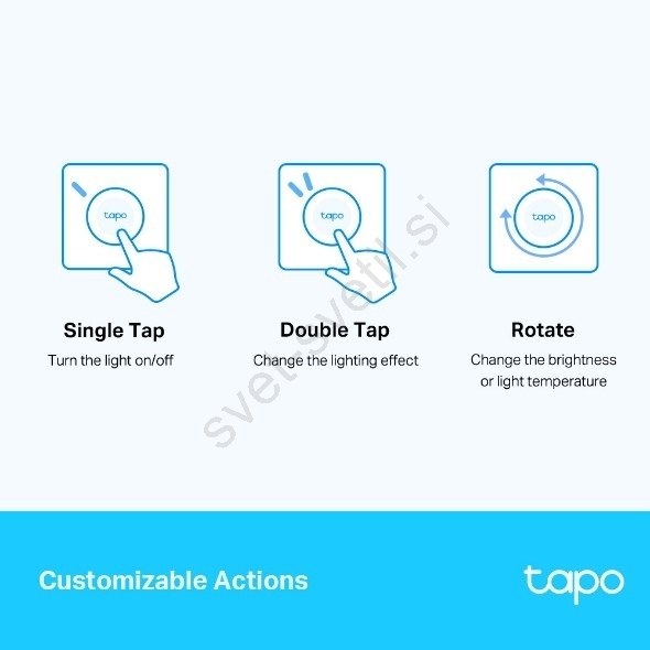 • Podpira različne funkcije gumba: enkratni pritisk, dvakratni pritisk in obračanje za zatemnjevanje ali spremembo svetlobnega učinka.