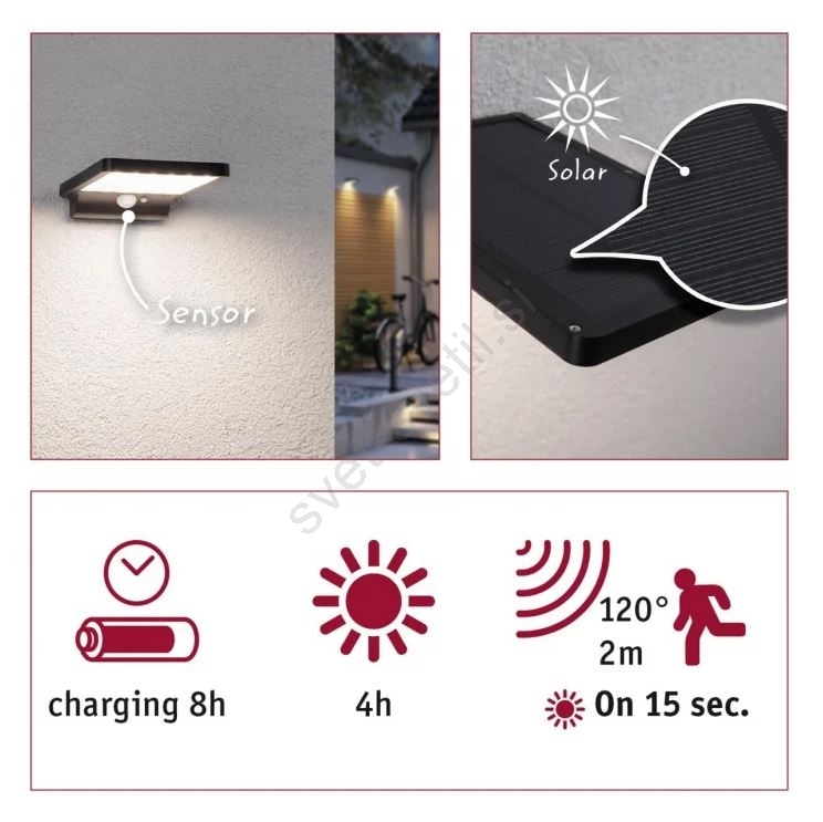 Paulmann 95393 - LED/4W IP44 Zatemnitvena solarna stenska svetilka s senzorjem SOLVEIG 3,7V 2000 mAh