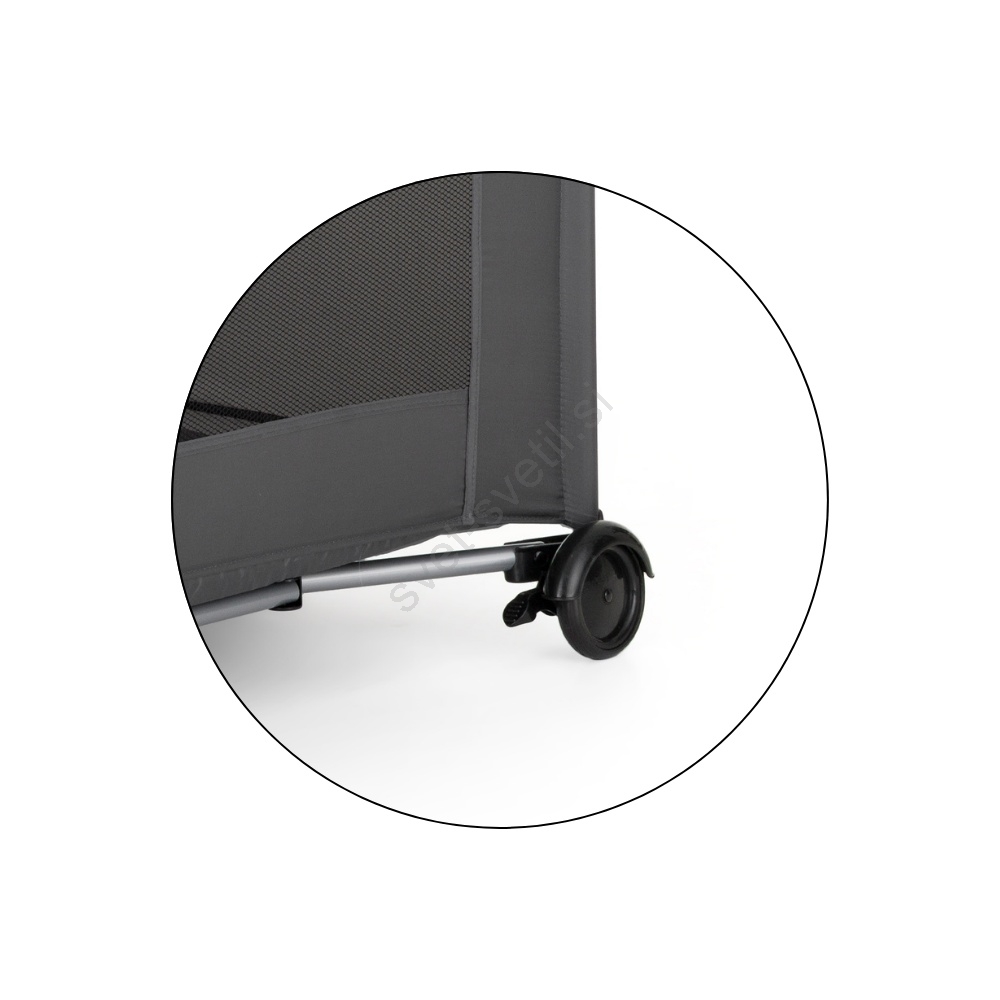 • Lahka potovalna posteljica z bočnim odpiranjem na zadrgo je idealna tako za potovanja kot tudi za obisk pri starih starših ali kot varen kotiček za domač počitek vašega otroka.