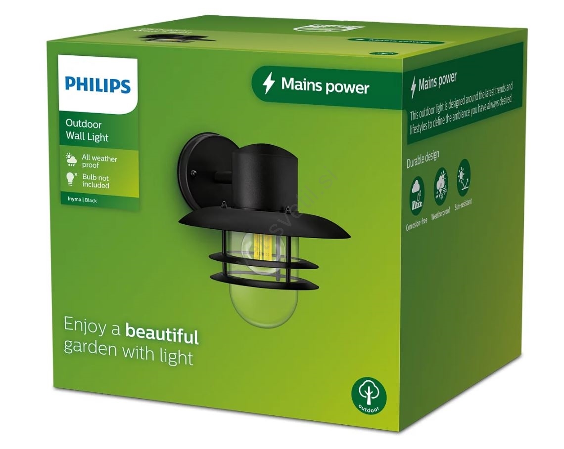 Philips - Zunanja stenska svetilka INYMA 1xE27/25W/230V IP44 je značilen lep in funkcionalen dizajn. Za svetilko je primerna žarnica z vznožkom E27. Tukaj lahko kupite ostale žarnice po ugodnih cenah.