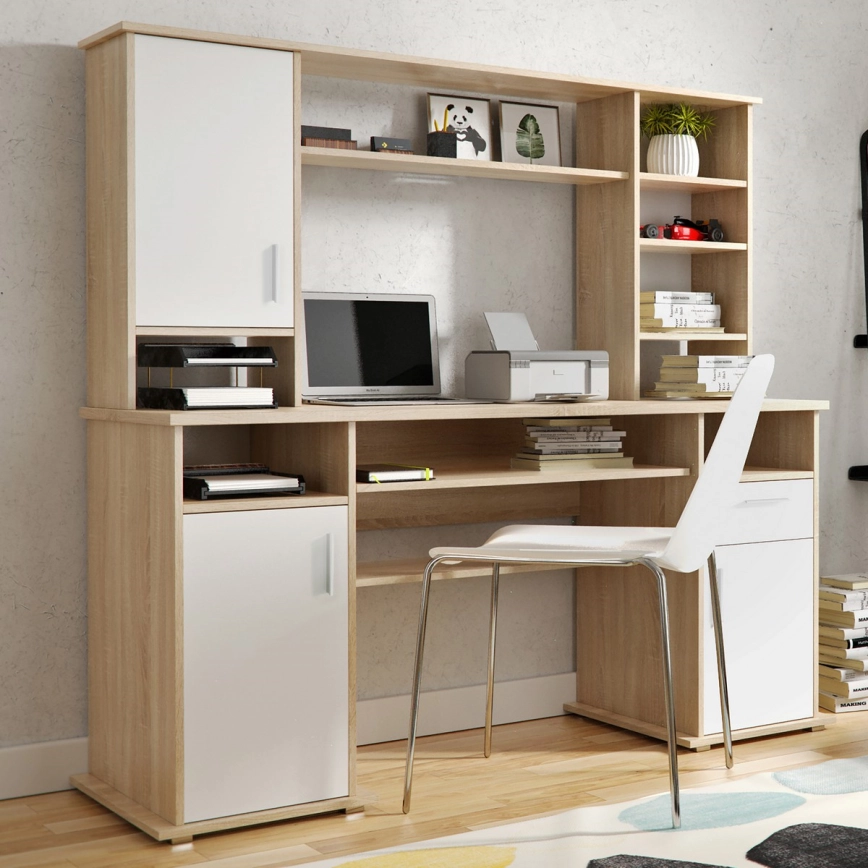 Pisalna miza ELIAN s polico, hrast sonoma/bela