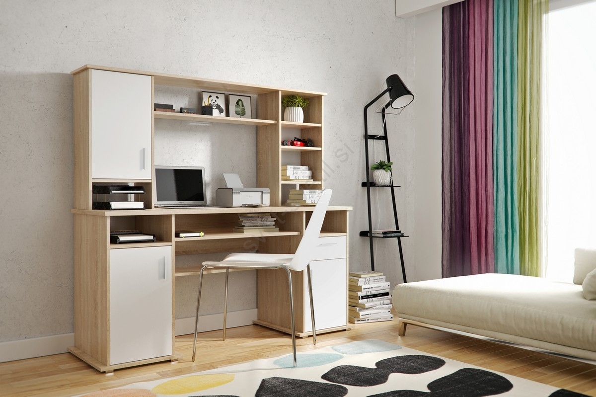 • Pisalna miza ELIAN s polico, hrast sonoma/bela