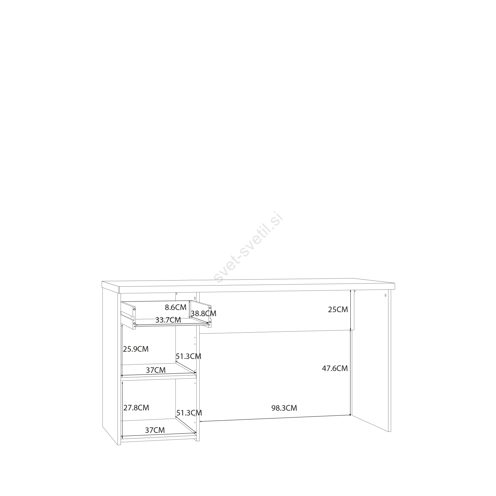 • Delovna plošča je dovolj prostorna za dekoracije, elektroniko ali druge potrebščine.