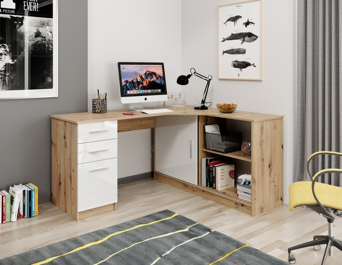 • Pisalna miza z policami in predali ROBERTO, desna, hrast Artisan/bela