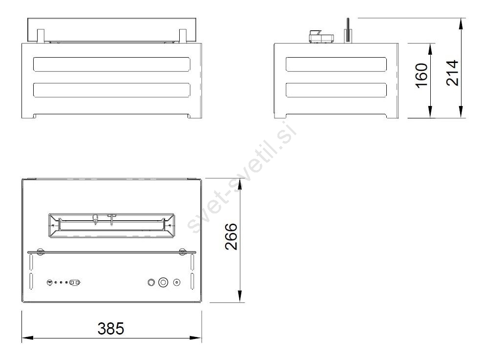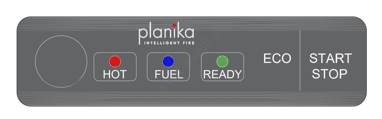 • Nadzorna plošča omogoča ročno vklop in izklop kamina, preklop v ECO način in hkrati signalizira, kdaj je rezervoar za gorivo prazen, kdaj je kamin pripravljen za vklop in kdaj je pregrete.