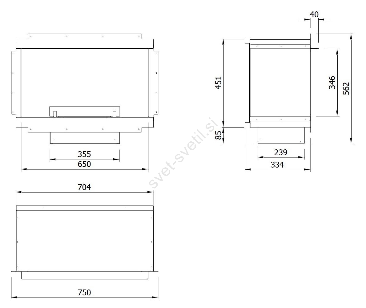 • Dimenzije kamina: 56,2 x 75 x 33,4 cm.