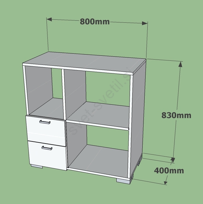 • Izdelano iz laminirane iverne plošče, s kovinskimi ročaji.