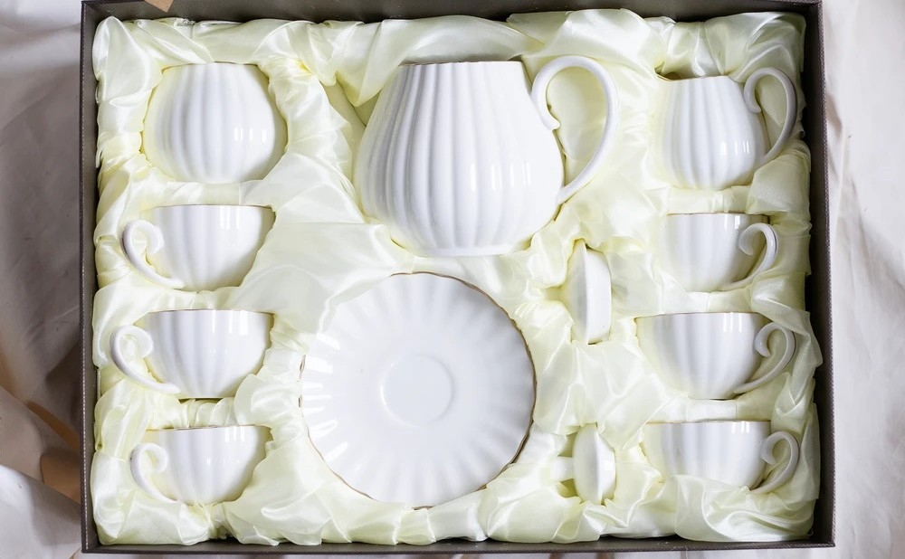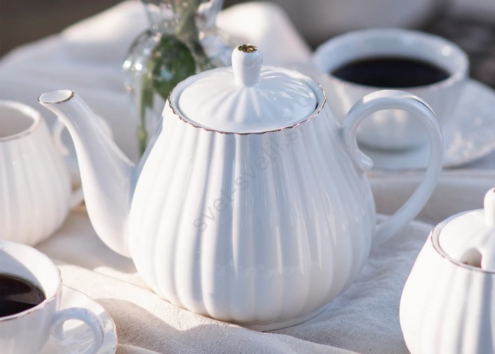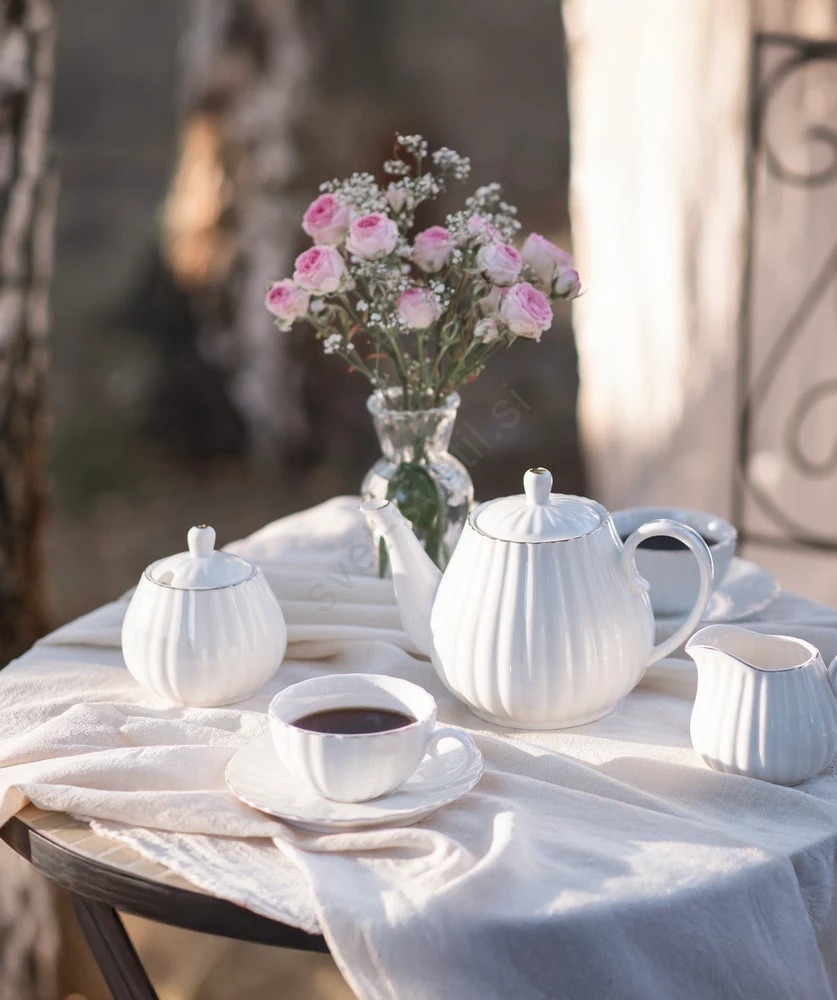 Porcelanast 15-delni kavni komplet, bel