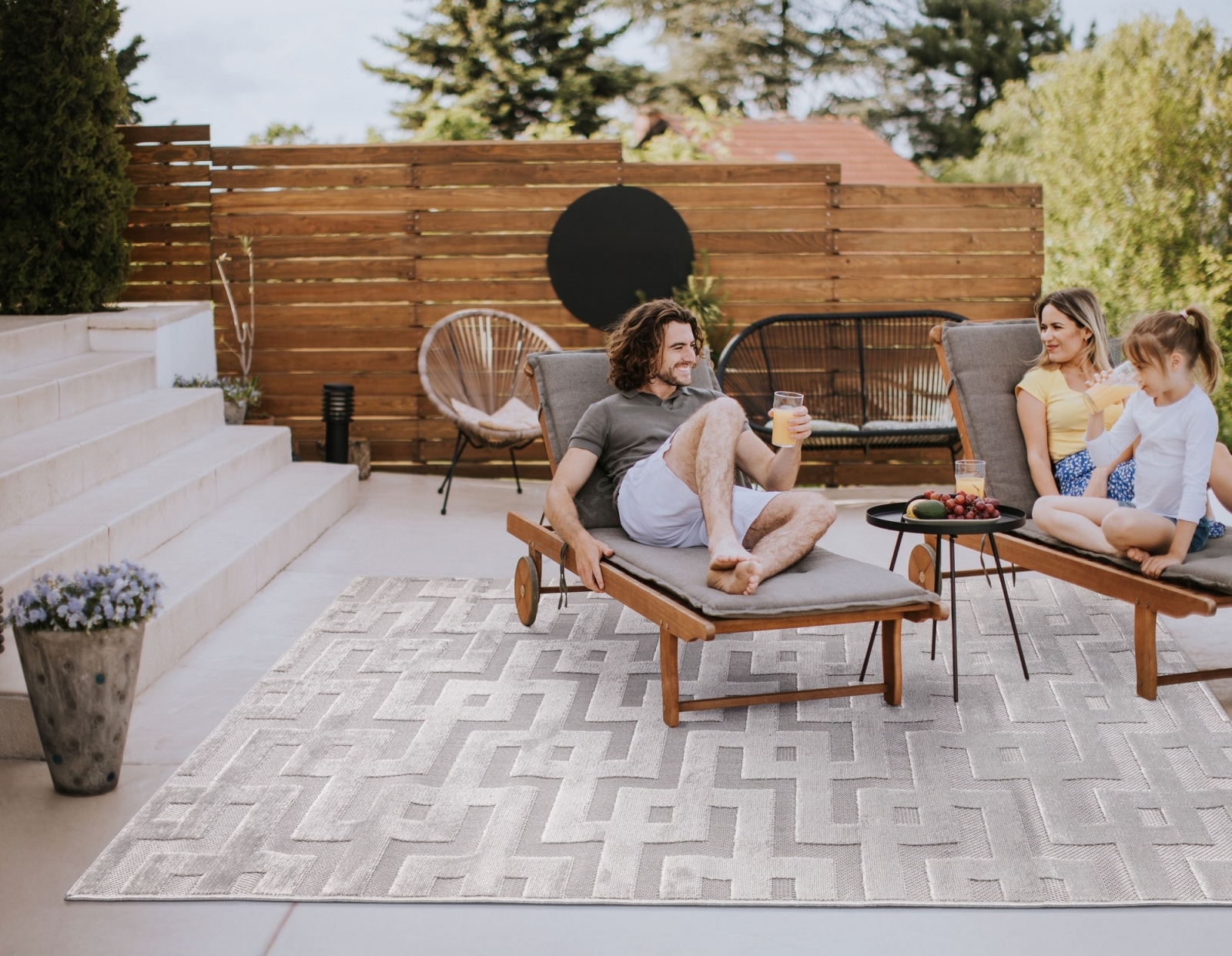 • Moderna in funkcionalna preproga z labirintnim vzorcem.