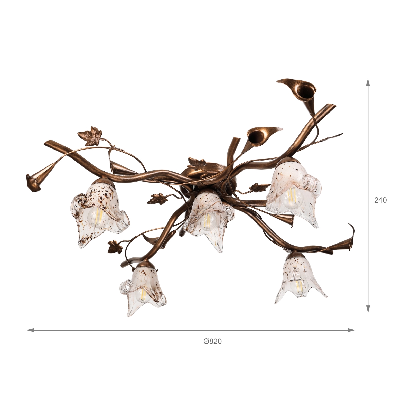 Pritrdjen lestenec ROZETA 5xE14/40W/230V bronast
