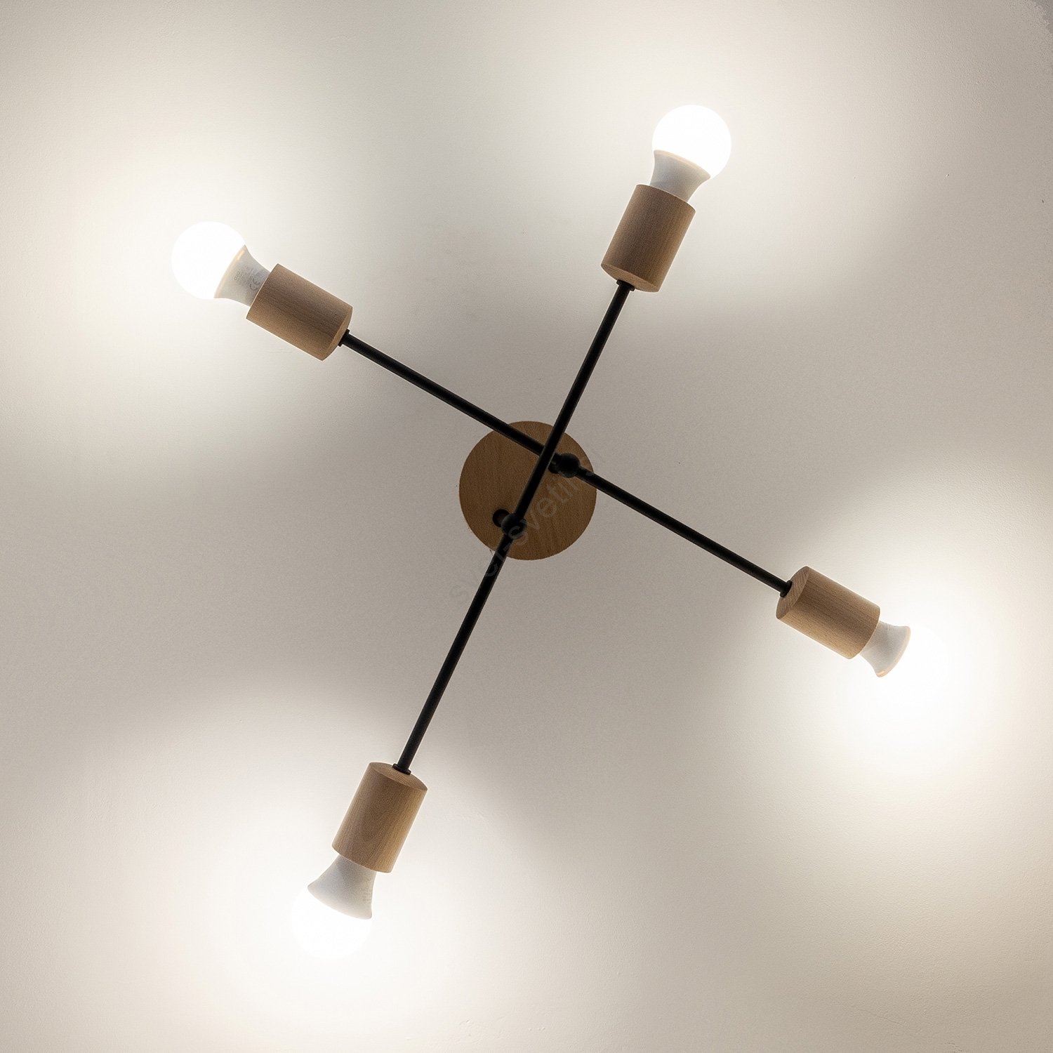 Pritrdjen stropni lestenec CAMBRIDGE 4xE27/15W/230V iz borovine