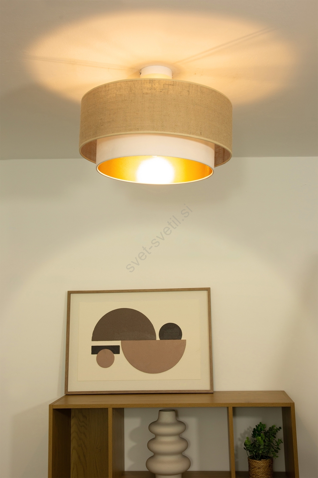 Pritrdljiva stropna svetilka SARTA 1xE27/60W/230V Ø 45 cm bela/juta je značilen lep in funkcionalen dizajn. Za svetilko je primerna žarnica z vznožkom E27. Tukaj lahko kupite ostale žarnice po ugodnih cenah.