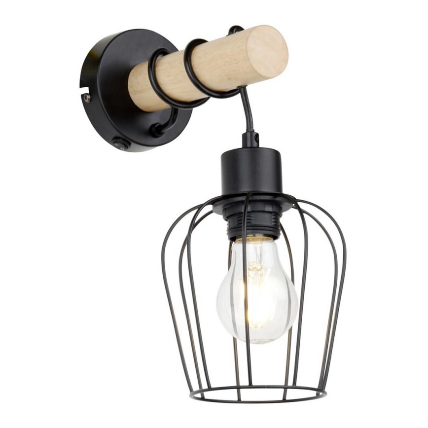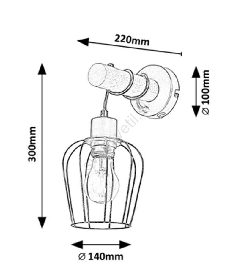 Stenska svetilka Fabian v industrijskem slogu bo edinstven kos pohištva v dnevni sobi, jedilnici, kuhinji ali celo v spalnici. Ta model, sestavljen iz mat črne svetilke in senčnika iste barve, je izdelan iz kovine in lesa. Svetilko je mogoče pritrditi na steno s pomočjo okrogle okrasne podlage. Okrasna podlaga je s senčnikom povezana s kablom, ovitim in skritim v lesenem valju, ki temu modelu daje surov, naraven videz. Svetloba brez ovir seva izpod senčnika, ki spominja na kletko. Svetilko Fabian je mogoče uporabljati z eno žarnico z močjo do 40W. Tip grla je E27. Če želite v prostoru doseči čist in jasen učinek, izberite žarnico, ki oddaja naravno belo svetlobo. Svetilko Fabian je mogoče upravljati s stikalom, nameščenim na okrasni podlagi. Dimenzije te svetilke so naslednje: širina svetilke in premer senčnika sta 140 mm, višina žarnice je 300 mm, razdalja od stene 220 mm. Ta model je dobavljen brez svetlobnega vira.