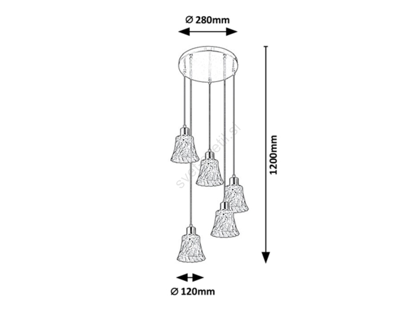 Viseča svetilka Hestia s 5 žarnicami v klasičnem slogu bo elegantni kos pohištva v vaši dnevni sobi, jedilnici ali morda spalnici. Kromirano kovinsko svetilo je dopolnjeno s prozornimi steklenimi senčniki. Svetilo je mogoče pritrditi na strop s pomočjo velikega okroglega dekorativnega podstavka. Zanimivost zvonastih senčnikov, ki visijo na različnih višinah, je zvit učinek njihove valovite površine. To viseče svetilo je zaradi svoje velikosti odlično tudi za osvetlitev večjih prostorov. Svetilo Hestia lahko uporablja pet žarnic, vsaka z močjo do 40 W. Tip grla je E14. Če želite izboljšati intimno in prijetno vzdušje, izberite toplo belo svetlobo za ta svetilni vir. Dimenzije viseče svetilke Hestia s 5 žarnicami so naslednje: premer vsakega senčnika je 120 mm, skupni premer svetilke je 280 mm, razdalja od stropa 1.200 mm. Ta model se dobavlja brez svetlobnih virov.