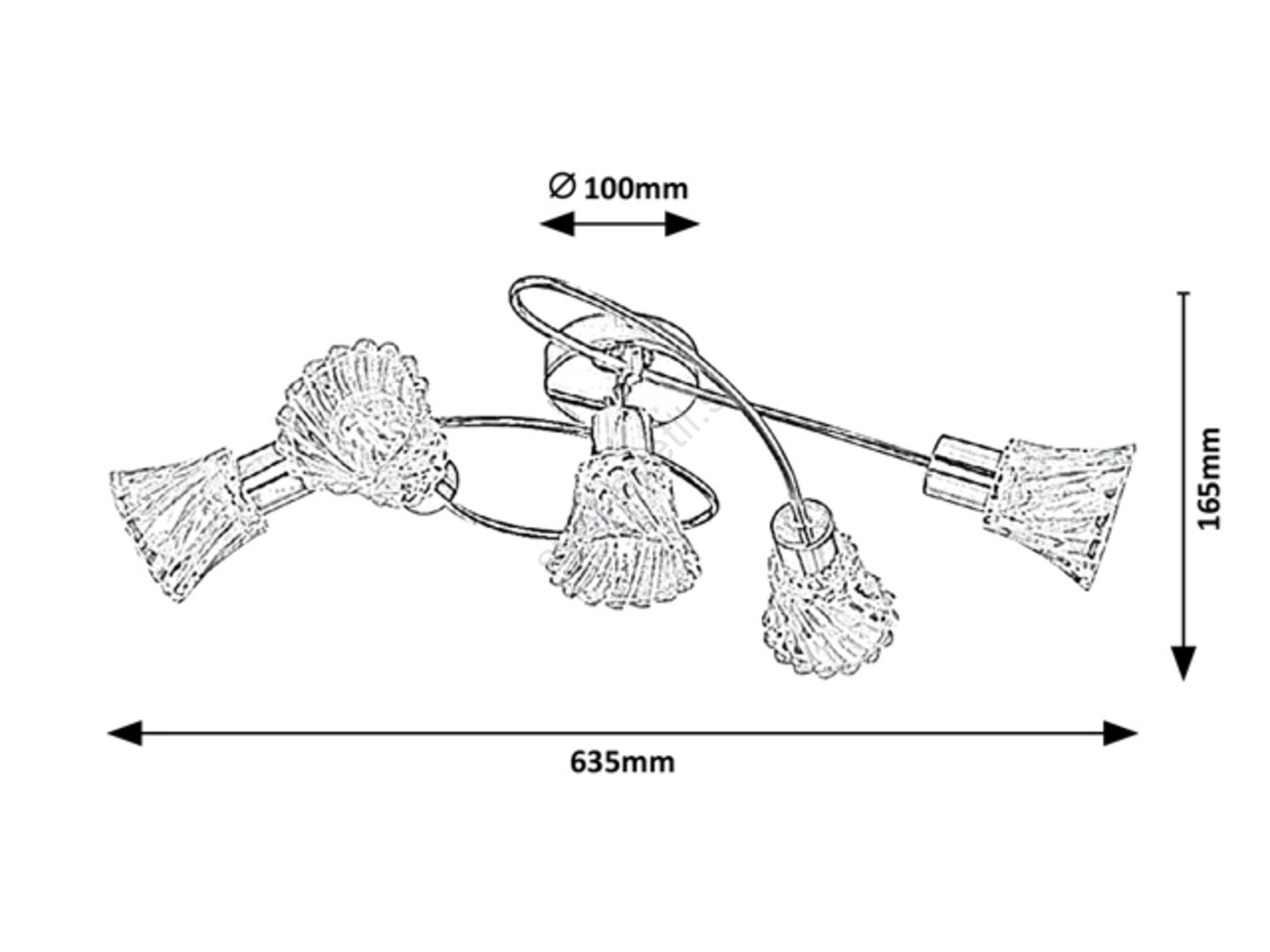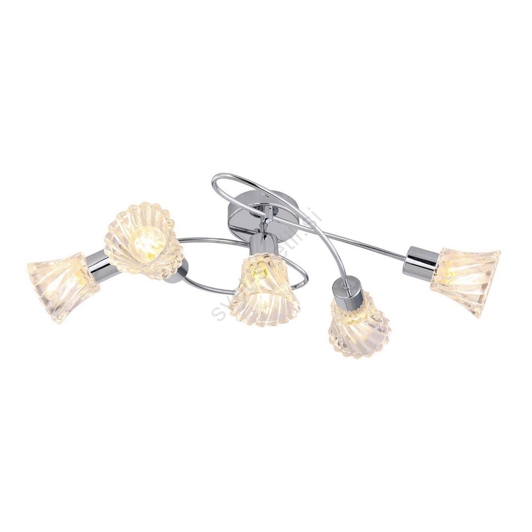 Stropna svetilka Hestia s 5 žarnicami v klasičnem slogu bo elegantni kos pohištva v vaši dnevni sobi ali spalnici. Kromirano kovinsko svetilo, ki spominja na zvite trte, je dopolnjeno s prozornimi steklenimi senčniki. Svetilo je mogoče pritrditi na strop s pomočjo okroglega dekorativnega podstavka. Zanimivost senčnikov v obliki zvonca je zvit učinek njihove valovite površine. Pet glav svetila, usmerjenih v različne smeri, zagotavlja dovolj svetlobe v vsakem delu prostora. To stropno svetilo je mogoče uporabiti s petimi žarnicami, vsaka z močjo do 40W. Tip grla je E14. Če želite izboljšati intimno in prijetno vzdušje, izberite toplo belo svetlobo za to svetilo. Dimenzije stropne svetilke Hestia s 5 žarnicami so naslednje: širina 635 mm, razdalja od stropa 165 mm, premer montaže 100 mm. Ta model se dobavlja brez svetlobnih virov.