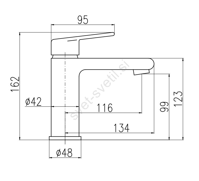 • Pipa za umivalnik z montažo na pult, brez odtoka.