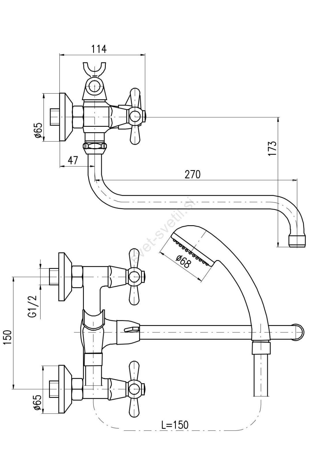 • Kopalniški set s stensko kadno baterijo s keramičnim preklopnikom, okroglim izlivom, ročno prho in nosilcem za prho.