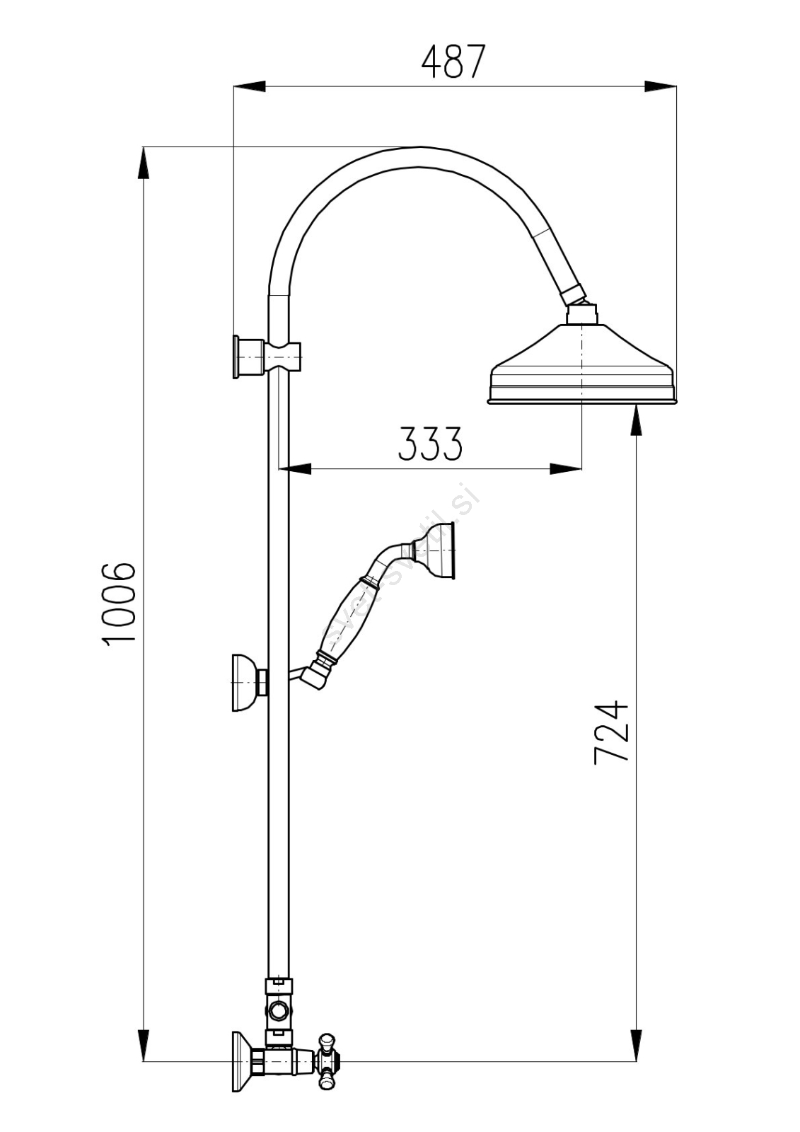 • Stenska tuš armatura z nadglavno in ročno prho za udobno tuširanje.