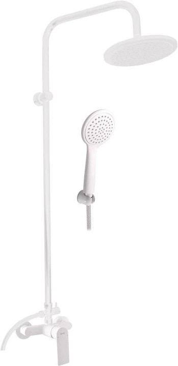 • Komplet vsebuje: tuš mešalnik, plastično ročno tuš glavo (Ø 103 mm), plastično stropno tuš glavo (Ø 230 mm), plastično tuš cev (1500 mm), tuš drog.