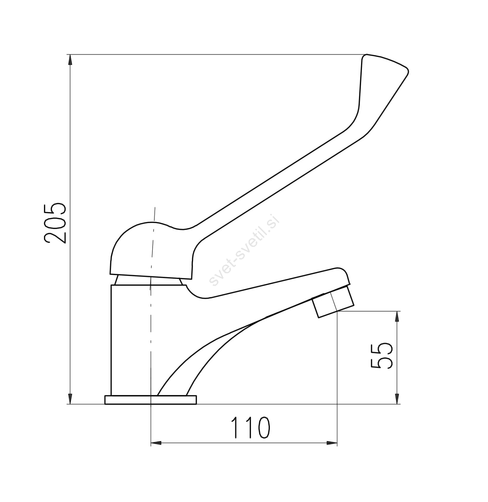 • Stojna pipa za umivalnik brez odtoka z medicinskim ročajem.
