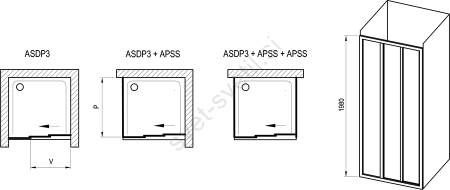 • Tridelna tuš vrata s polnilom iz neprozorne plastike.