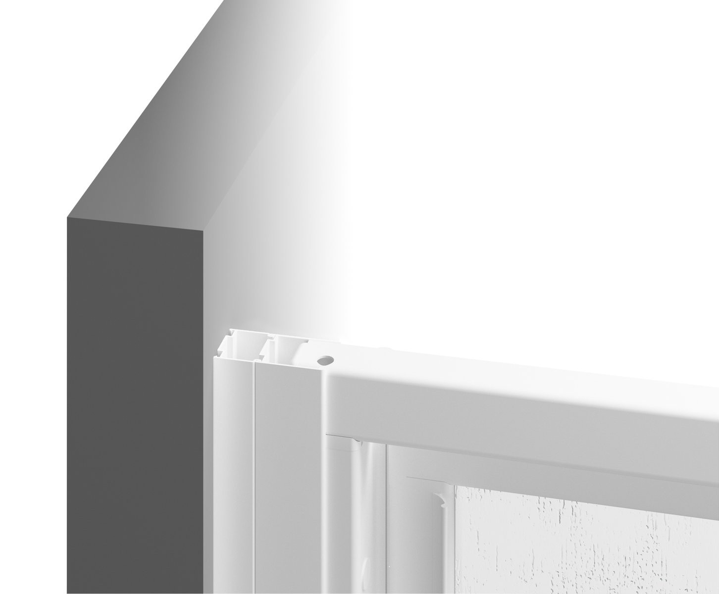 • Četrtkrožna tuš kabina Supernova, sestavljena iz štirih delov, v klasični beli izvedbi z izpolnitvijo iz neprosojne plastike z dekorjem Pearl je zanesljiva rešitev za vsakodnevno tuširanje.
