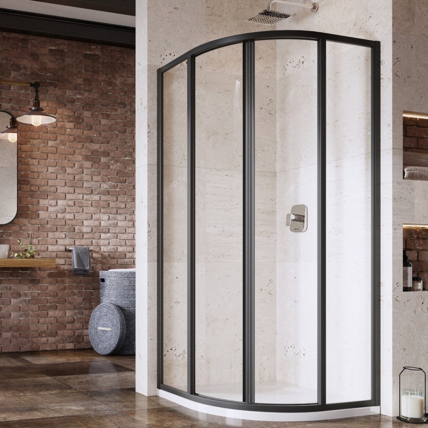 • Štiridelna polkrožna tuš kabina Supernova v črni izvedbi je zanesljiva rešitev za vsakodnevno prhanje.