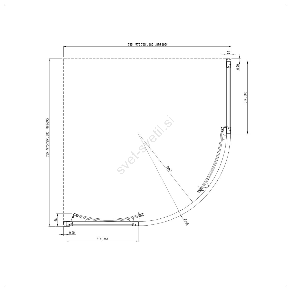 • Tuš kabina višine 195 cm se montira v obložen kotiček kopalnice na tuš kadi Ravak Ronda, Elipso, Elipso Pro, Elipso Pro Chrome ali neposredno na tla z vgrajenim odtočnim žlebom oziroma talnim sifonom.