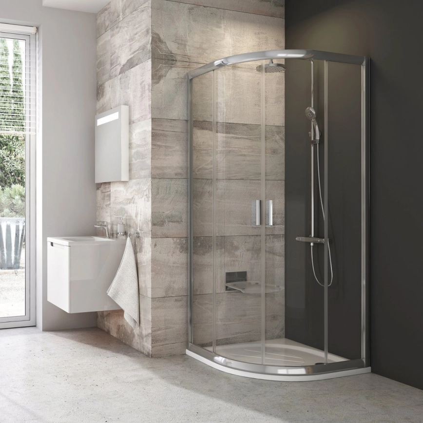 • S polmerom 550 mm in višino 190 cm nudi dovolj prostora za udobno prhanje, ne da bi delovala robustno.